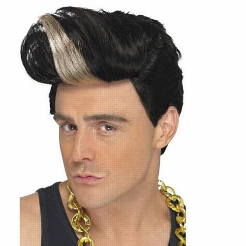 90’S Rapper Wig, Black, Quiff Wig With Highlight