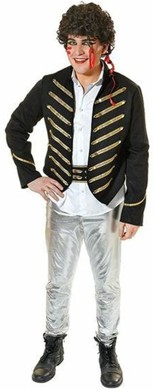 Adam Ant Costume Includes trousers and top only. Would be great for an 80’s party! Complete the look with some black face apint and black wig.