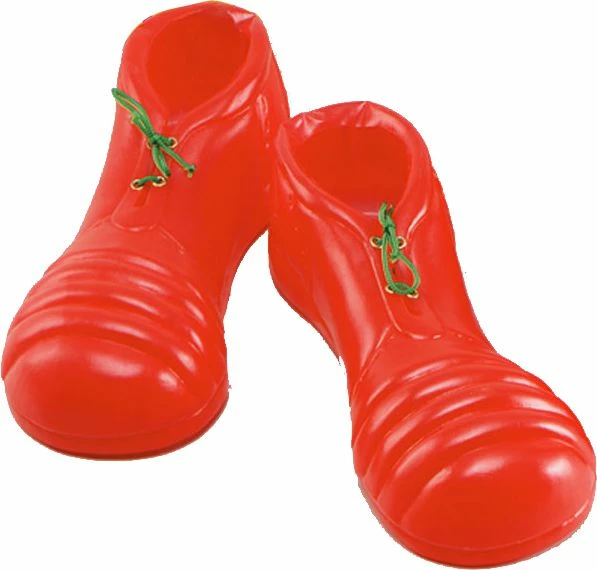 PVC red clown shoes. Perfect to complete your clown outfit. Adult size