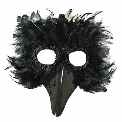A quality masquerade mask with glossy plastic beak and full covering of black feathers. Perfect for Mardi Gras, masquerades and crow costumes.