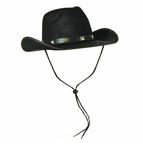 Black cowboy style felt hat with studded band to complete any cowboy fancy dress costume such as John Wayne, Clint Eastwood or Randolph Scott. Great for any western themed birthday party or a wild west movie night. Browse our Wild West section for more western hats, costumes and accessories.