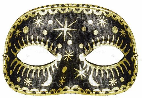 Domino mask with black and gold moon and stars design. Great for any fancy dress party or celebration.