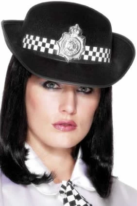 Black poilcewoman’s felt hat. Great for the policeman’s ball or as an accessory for fancy dress. One size.