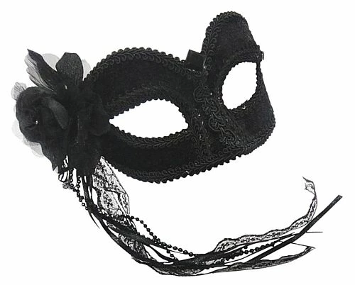 Black Velvet Flower Mask- Glasses Style with lace, beads and braiding