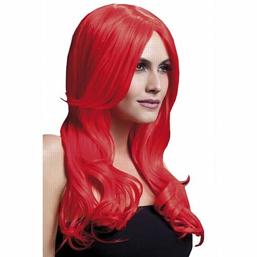Fever Khloe Wig, Wavy With Long Fringe, Neon Red, With Skin Parting & Professional Wig Cap