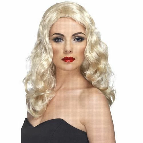 Glamorous long blonde wavy wig. Ideal for that Hollywood glamour look or an award night themed party or 1940’s or 50’s filmstar costume.