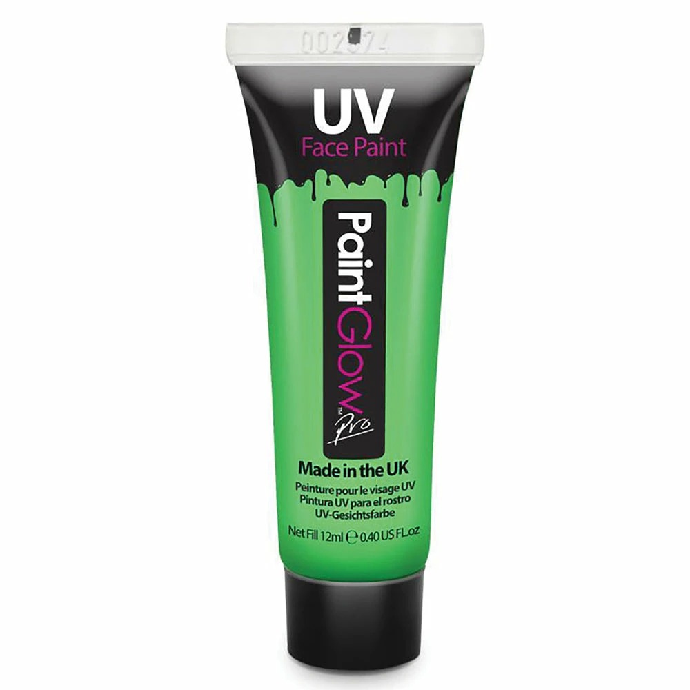 Take body and face painting to the next level with this amazing bright green neon body paint! They come in a wide range of colours which look vibrant in the daylight but under UV light or a black light glow in the dark! Ideal for festivals, clubbing, dance groups, parties and other events.