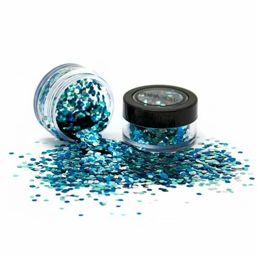 Beautifully electric this bright blue, teal and silver shimmering body glitter is an awesome festival fashion make-up accessory and perfect for decorating faces at mermaid, under the sea, Disney Frozen and ice princess themed children’s birthday parties. This ‘ice queen’ mixed chunky biodegradable glitter is cruelty free and eco-friendly so you can add sparkle to your celebrations without any harmful impact on our planet.