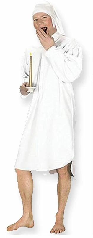 Night Shirt- Male. Great costume for a Christmas themed party! Could be used as Scrooge from A Christmas Carol by Charles Dickens. Candle not included. One size fits all.