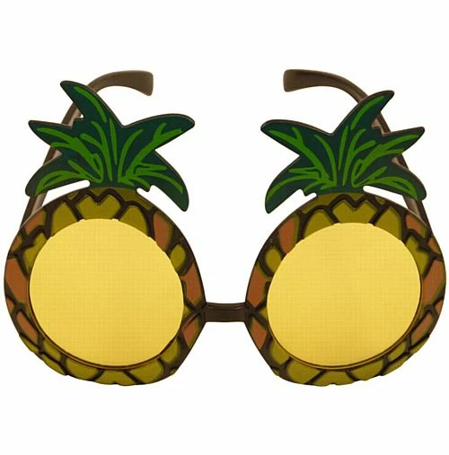 Plastic pinapple themed sunglasses. Perfect to add a bit of humour to any tropical themed event. With tinted orange colour lenses these pineapple glasses can be worn for a beach party or luau.