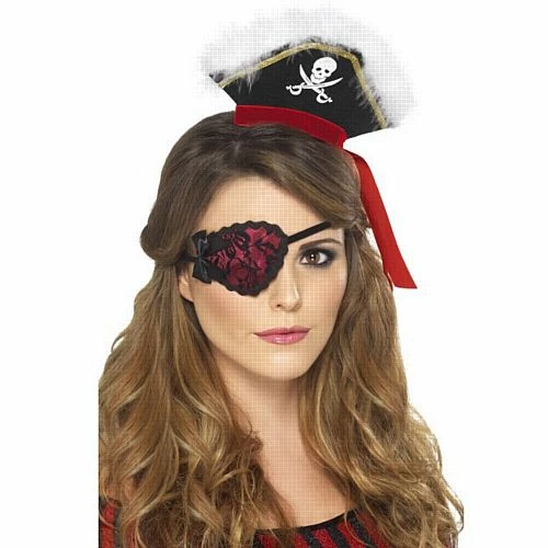 Pirate Eyepatch, Red, With Black Lace and Ties