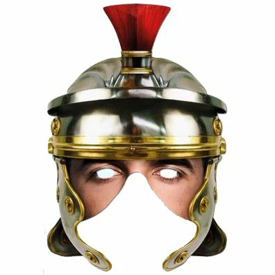Our Roman Helmet card face mask features a helmet in regal Centurion style with a silver and gold finish, a plume of red feathers and the top half of a Roman’s face. This mask is a fantastic accessory for historical parties.