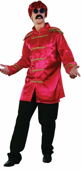 Red Jacket from the Beatles album Sergeant Pepper’s Lonely Hearts Club Band. With gold fringe detailing on a red satin-feel military style jacket this is perfect for 1960s and pop themed events! Why not add some of our great 60s glasses or a fun wig?
