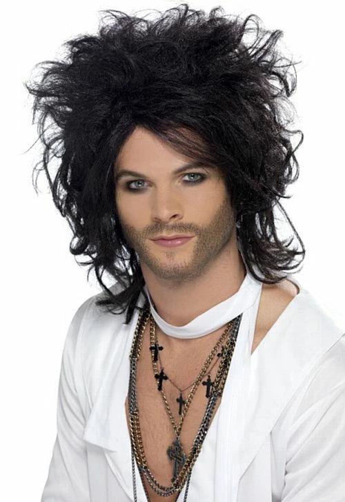 Sex God Wig, Black. Russell Brand inspired black scruffy wig.