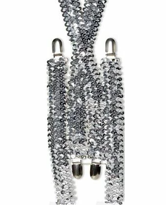 These sparkly silver sequin braces will be great with a gangster fancy dress costume! One size fits most adults. Add some shine to any costume or themed fancy dress party in the silver braces