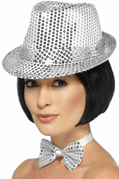 Wear this jazzy silver sequinned trilby hat to birthdays, Christmas, New Year, or a circus-themed event to wow your guests and bring some sparkle to their day! Accesorise with a matching bow tie and silver accessories to complete the look (sold separately).