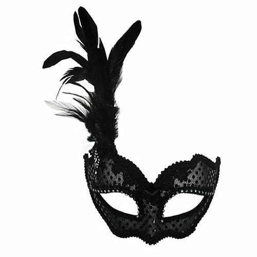 Transparent Black Mask With Feathers on headband. Lovely mask for a masquerade ball or mardi gras.