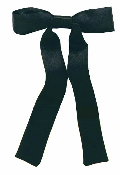 A black western style ribbon bow tie, perfect alternative to the classic bootlace tie. Can be worn by males or females to tie around the neck to complete a wild west cowboy or cowgirl costume