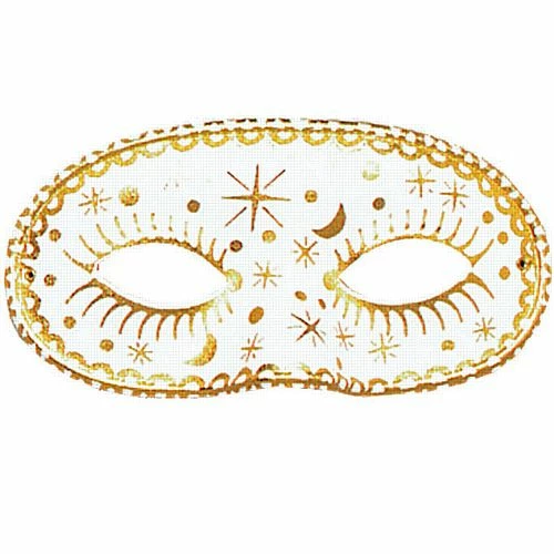 Domino mask with white and gold moon and stars design. Great for any fancy dress party or celebration.