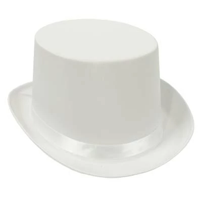 Quality white satin sleek top hat, perfect for ringmaster, awards night and casino costumes.